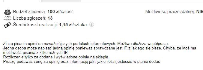 Przykład opinii na zamówienie.